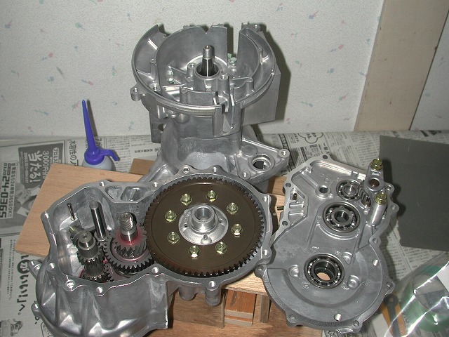 また、鉛筆埋込軽量クラッチ → 軽量クラッチのアウターの当たり面に穴を開けて、太めの鉛筆の芯(Bや2B)を埋め込んで接着剤で固定し、スタート時にわざと滑らせて半クラの様に動作させる加工もありました。注意点はクラッチは3個あるので、それぞれの当たり面に3個の穴を開け、他のクラッチとは位置をずらして、均一に鉛筆の芯がアウターに当たるようにします。 結構効きますよ。 |