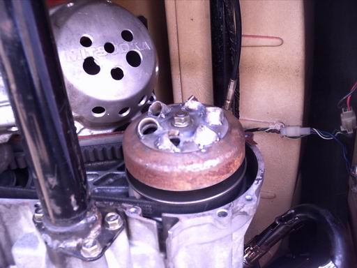 ベルトケースのダクト加工を始める前までは、センタースプリングの熱だれ防止にはミ○○ーさんの行ったような加工をしたり、写真のフィンをつけたりして対策していました。