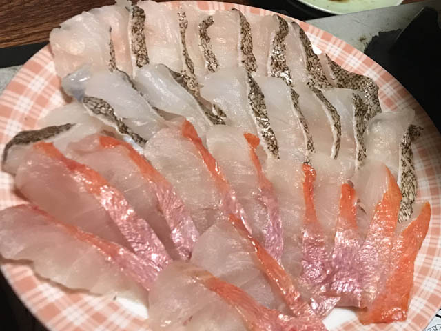 魚屋さんに頼んで、一人一皿になるようにテッサをもう少し確保しておきます。 唐揚げ用のアラはそこそこ確保しました。 |