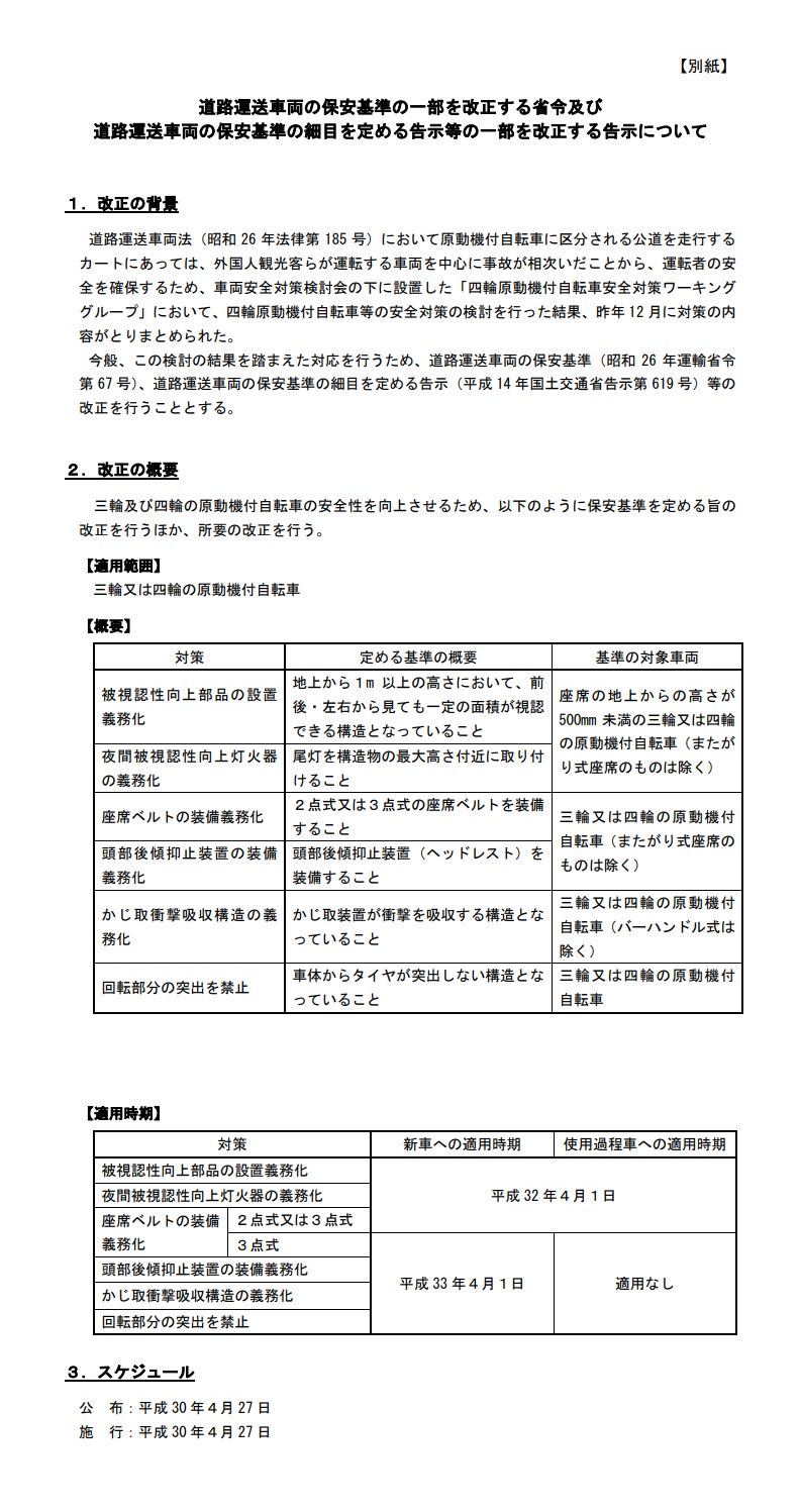 法の内容からすると、4輪のマイクロカーではMC−1やTはOKですが、その他はダメですね。アビーも灯火類が下に付いているのでダメだと思います。