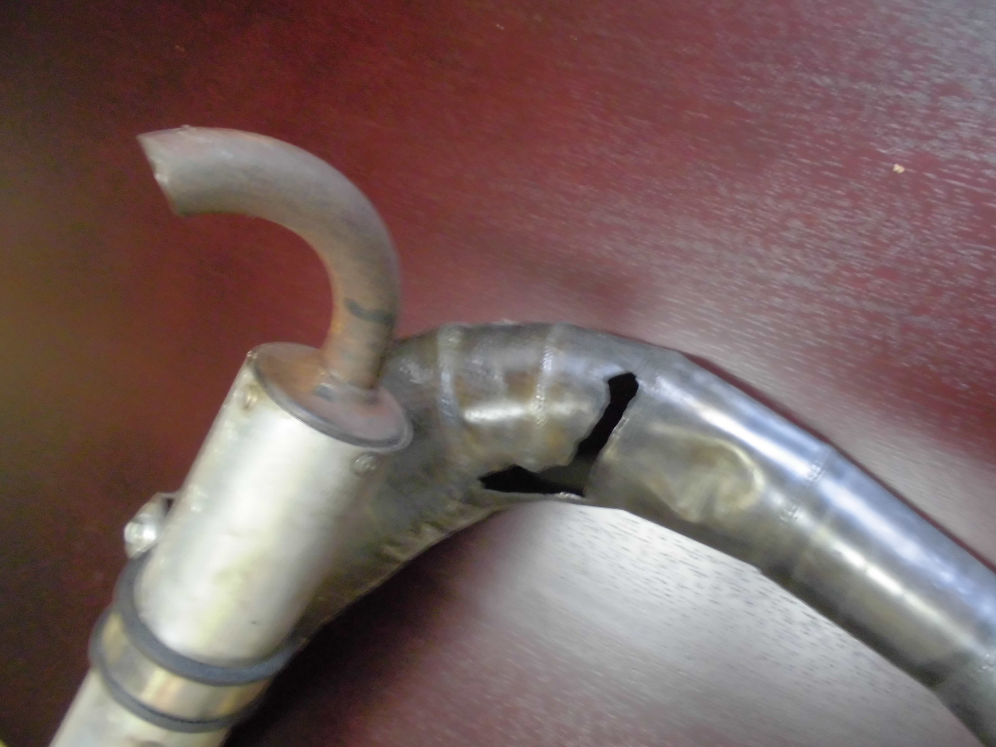 デカチャンバーのホーシングの取り付けステーがもげて、チャンバーに穴が開いて爆音に w