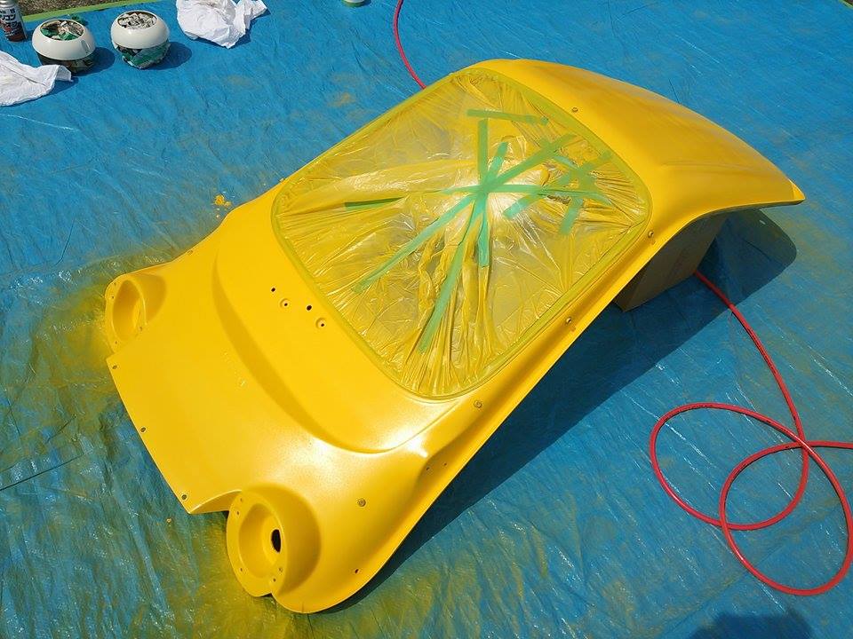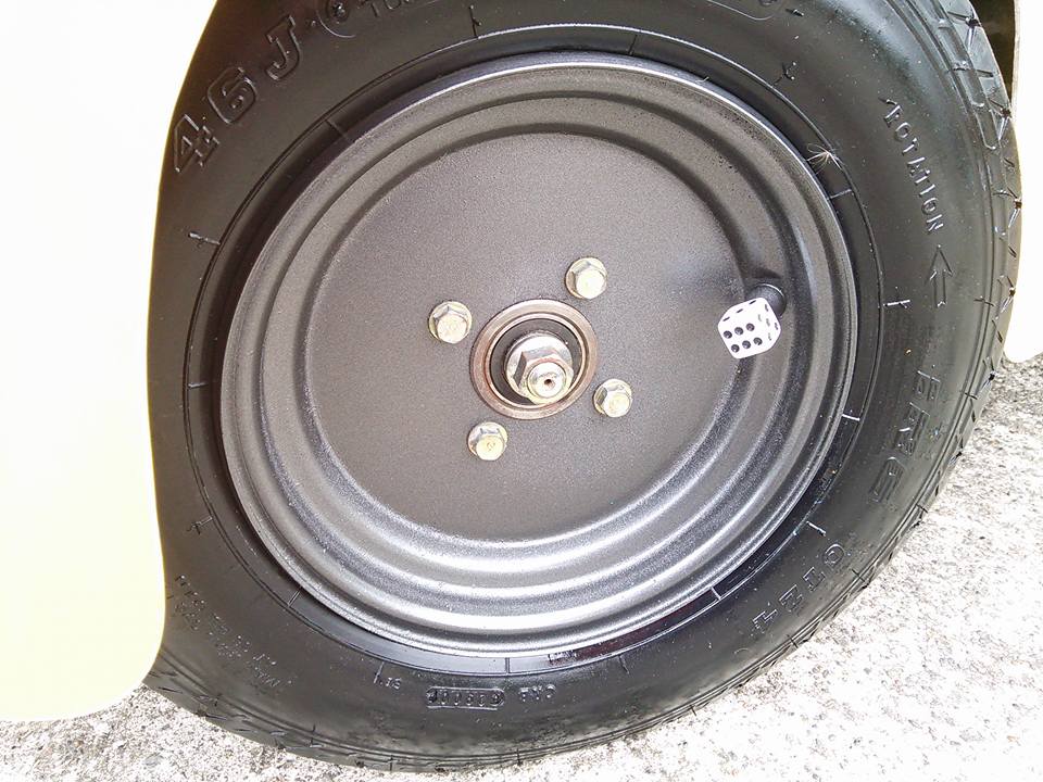 予算が無いのでタイヤは新品を買えず、ツヤツヤになるスプレーで塗りました。